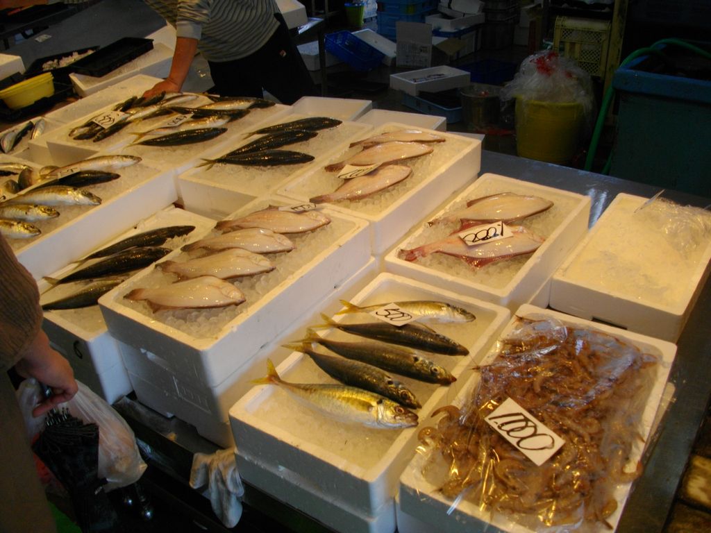 市場には漁港に水揚げされたお魚が直売されています